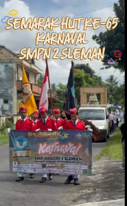 Dalam rangka memeriahkan peringatan Hari Ulang Tahun ke-65, SMP Negeri 2 Sleman sukses menyelenggarakan kegiatan karnaval pada Jumat, 24 Oktober 2025. Kegiatan ini melibatkan seluruh warga sekolah, mulai dari guru, siswa, orang tua, hingga komite sekolah yang turut berpartisipasi dengan penuh antusias.